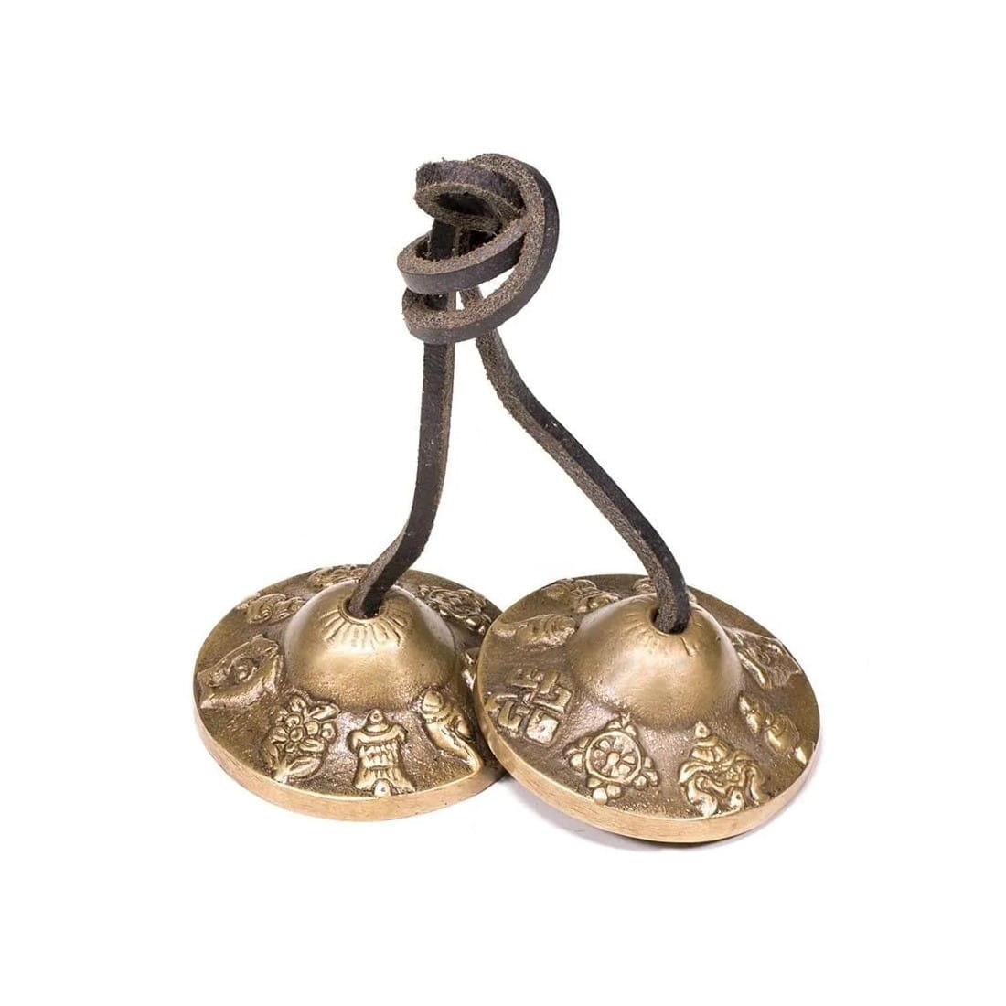 Dzwonek tybetański Tingsha - Osiem Symboli Dobrobytu (duży)