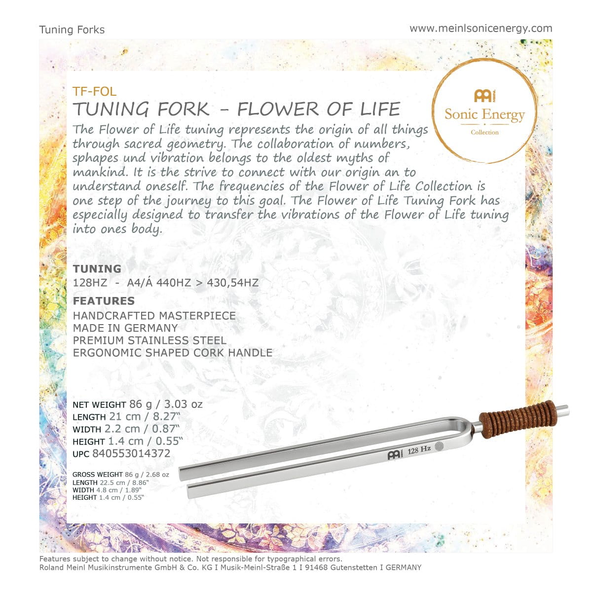 Pięknie wykonany, stalowy kamerton Czakry Serca, któremu odpowiada częstotliwość Ziemi - 136,10 Hz. Kamertony planetarne MEINL są produkowane przy użyciu obliczeń Hansa Cousto (dotyczących tzw. Kosmicznej Oktawy), w celu właściwego dopasowania częstotliwości Słońca, Księżyca i planet. Każdy z nich jest dostrojony tak, aby wytwarzał odpowiednią częstotliwość ciała niebieskiego. Kamertony z tej serii zostały zaprojektowane do zastosowania w celach terapeutycznych.