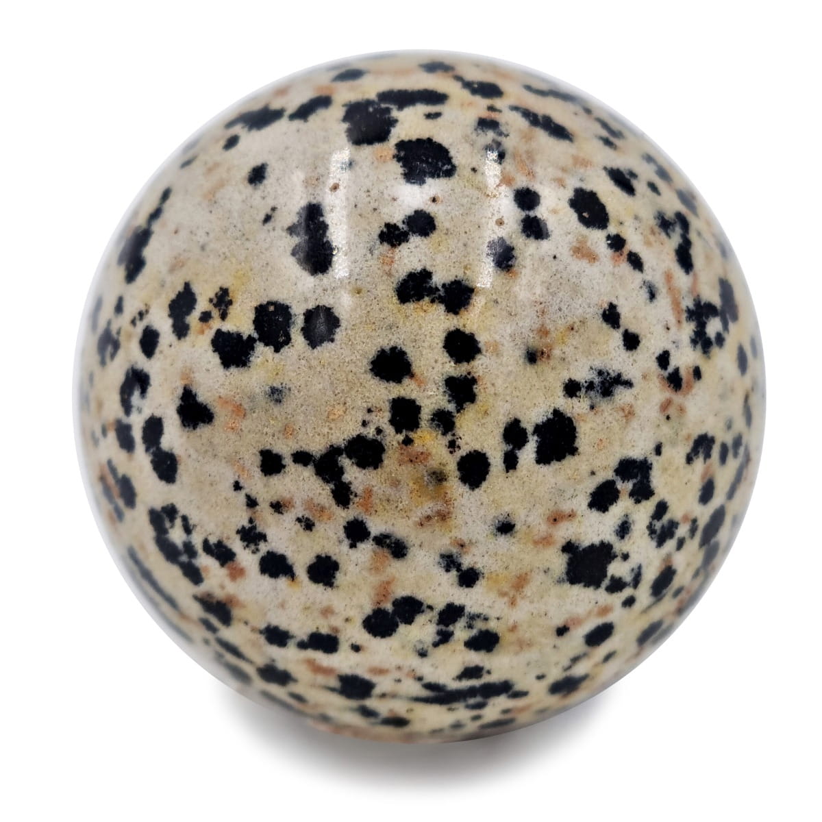 Kula z naturalnego, polerowanego jaspisu dalmatyńskiego.