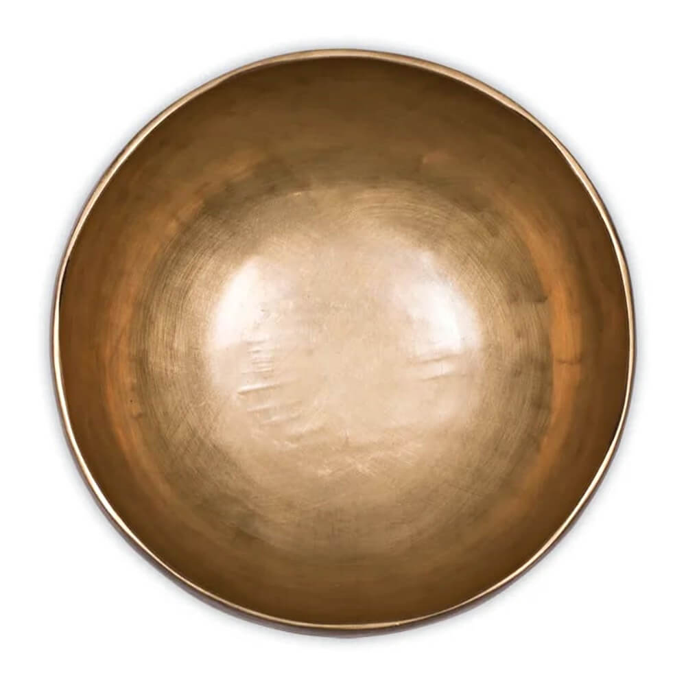 Oryginalna, ręcznie kuta misa z Nepalu o poszerzonym kształcie i wyjątkowym, długim brzmieniu. Każda misa została wykonana ręcznie z miedzi, cyny i ośmiu metali szlachetnych: srebra, niklu, kadmu, rutenu, palladu, platyny, chromu i manganu.
