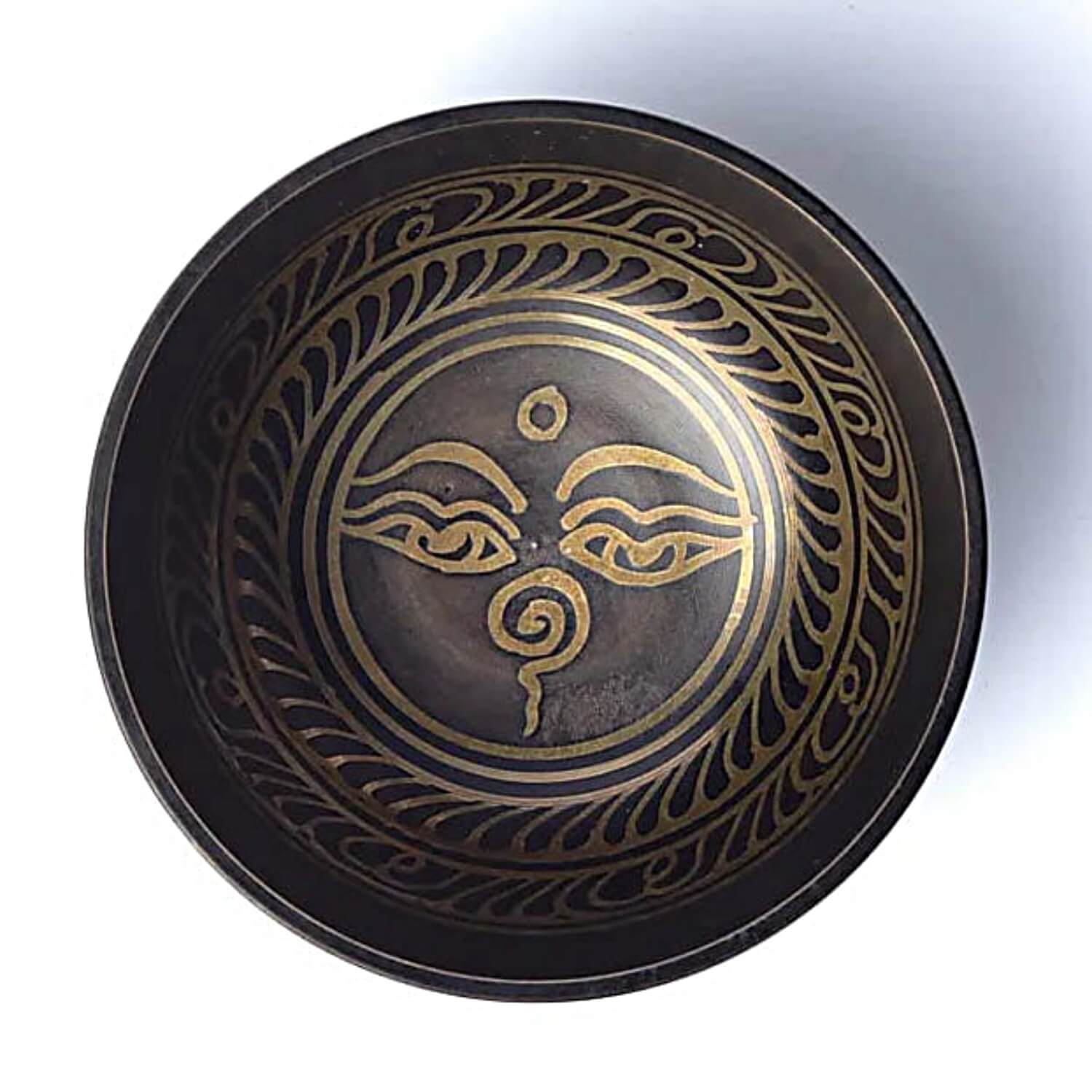 Niezwykle piękna, ręcznie kuta misa z Nepalu o wyjątkowym, długim brzmieniu. Wewnątrz jest złota, na zewnątrz czarna z polerowaną, złotą krawędzią. Każda misa została wykonana ręcznie z miedzi, cyny i ośmiu metali szlachetnych: srebra, niklu, kadmu, rutenu, palladu, platyny, chromu i manganu.