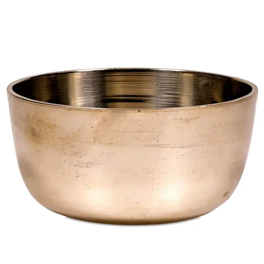 Oryginalna, ręcznie kuta misa z Nepalu o poszerzonym kształcie i wyjątkowym, długim brzmieniu. Każda misa została wykonana ręcznie z miedzi, cyny i ośmiu metali szlachetnych: srebra, niklu, kadmu, rutenu, palladu, platyny, chromu i manganu.