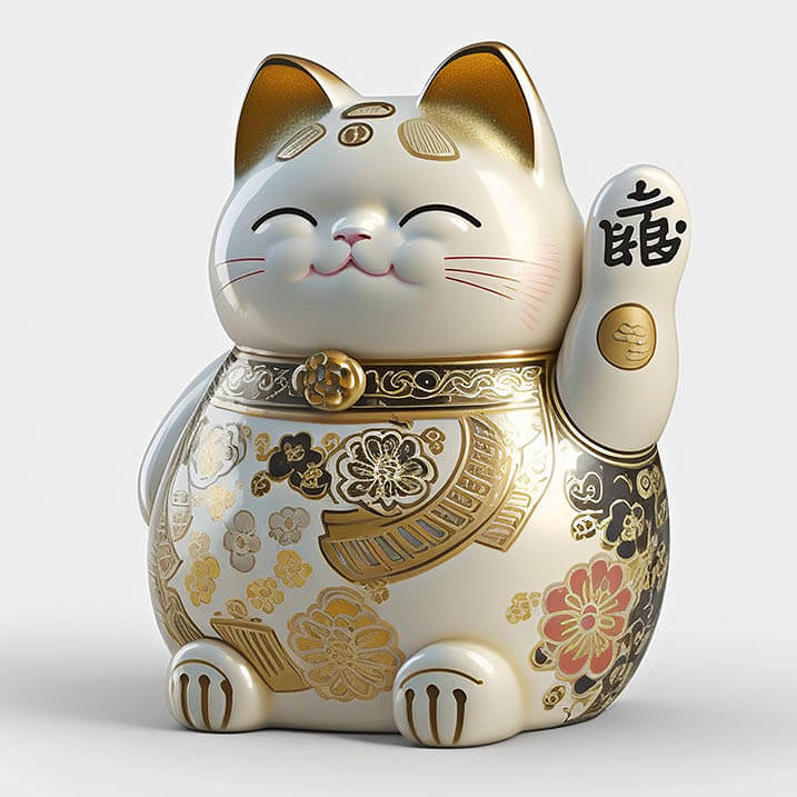 Znany również jako "kotek machający łapką", Maneki Neko jest popularnym symbolem w Japonii i krajach wschodnioazjatyckich. Wierzy się, że przyciąga on bogactwo i dobrobyt, a różne kolory kotka mają różne znaczenia. Na przykład, złoty Maneki Neko ma na celu przyciągnięcie bogactwa.